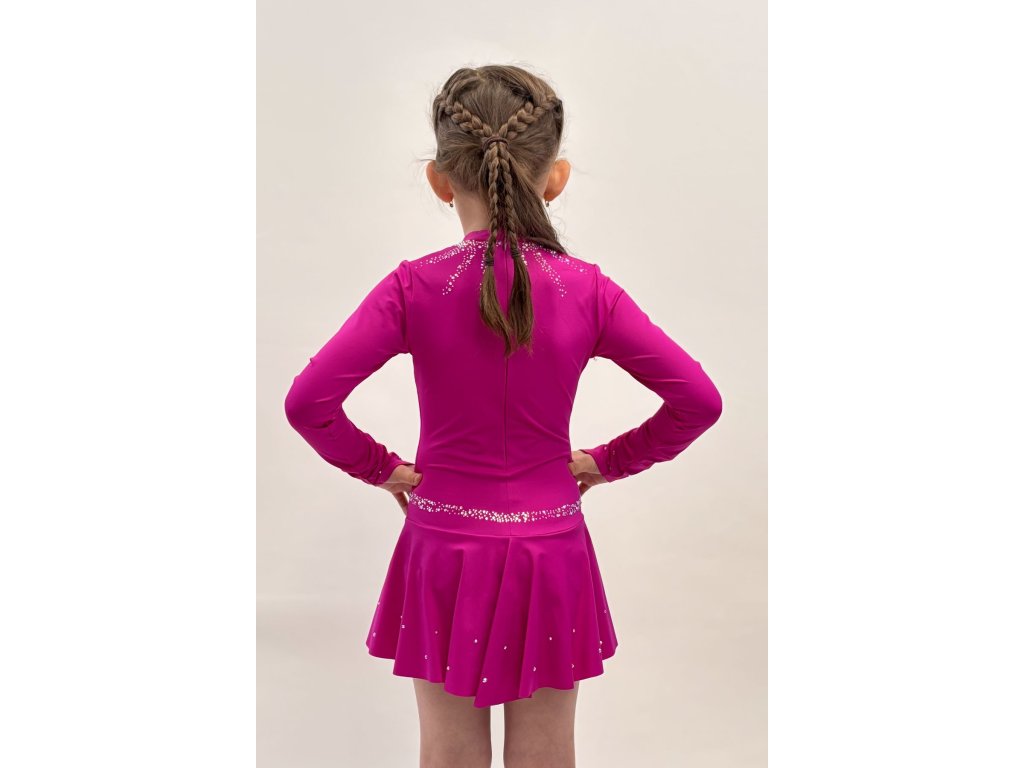 Šaty sú ušité z elastického, funkčného materiálu, ktorý zaručuje maximálny komfort, priedušnosť a voľnosť pohybu. Drobné lesklé kamienky po celej vrchnej časti a okolo sukienky vytvárajú decentný a žiarivý dojem.